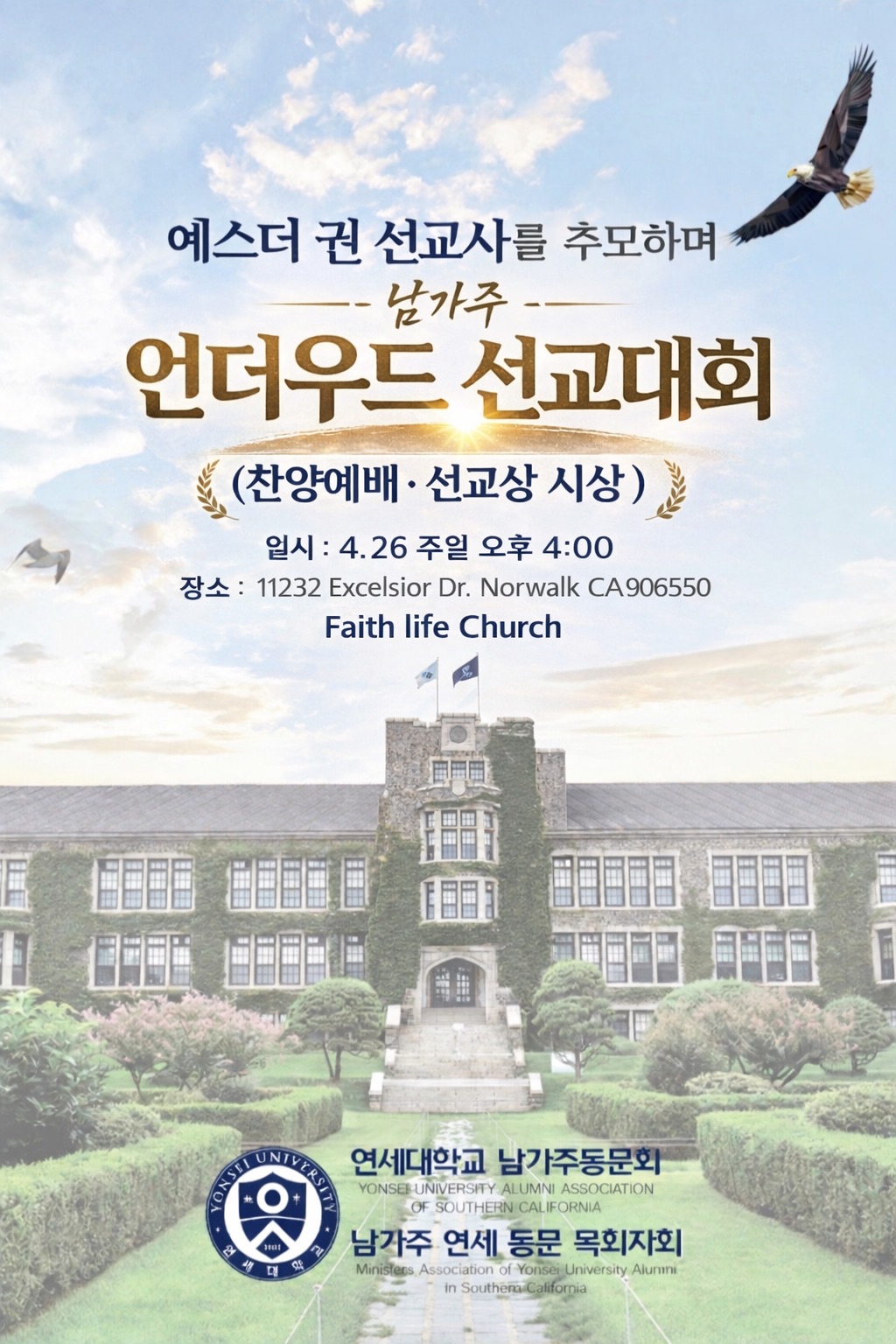 본 행사는 연세대학교 남가주 동문회와 남가주 연세 동문 목회자회가 공동으로 주관합니다.